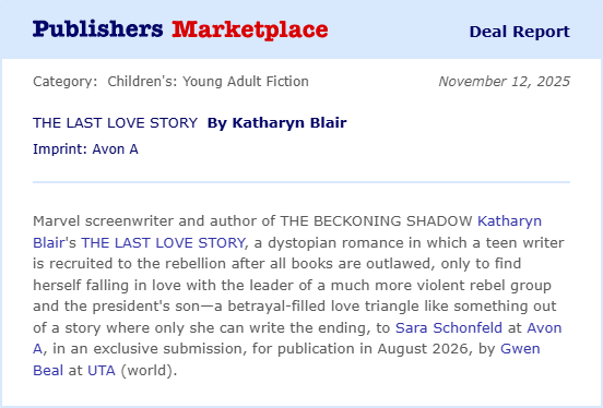 “In Katharyn Blair’s DEADLANDERS, the realm between life and death is guarded by mercenaries called Deadlanders. When a new recruit realizes that something is trying to break through from “the other side” – and that the threat is connected to her dead sister – she must risk everything to get answers.”